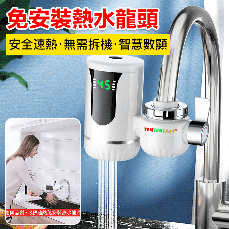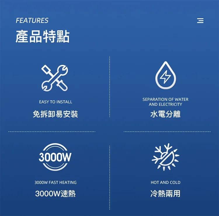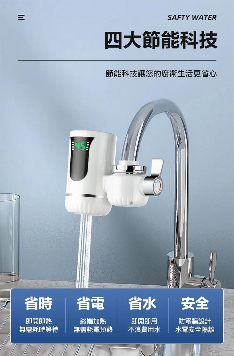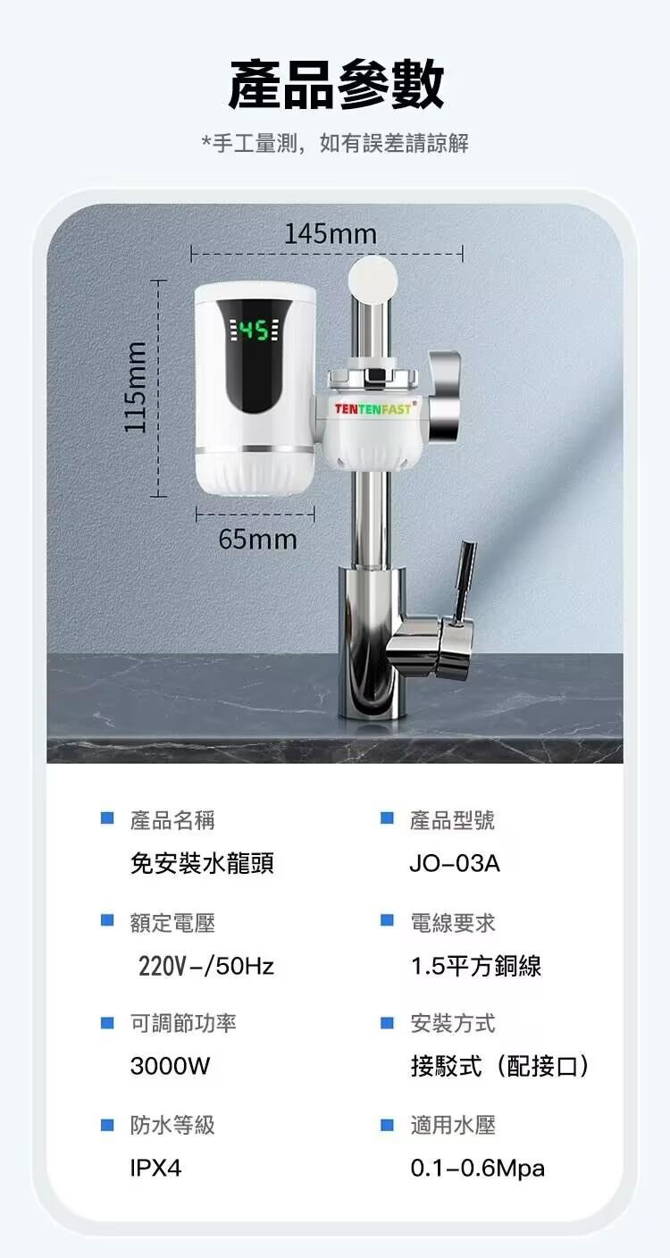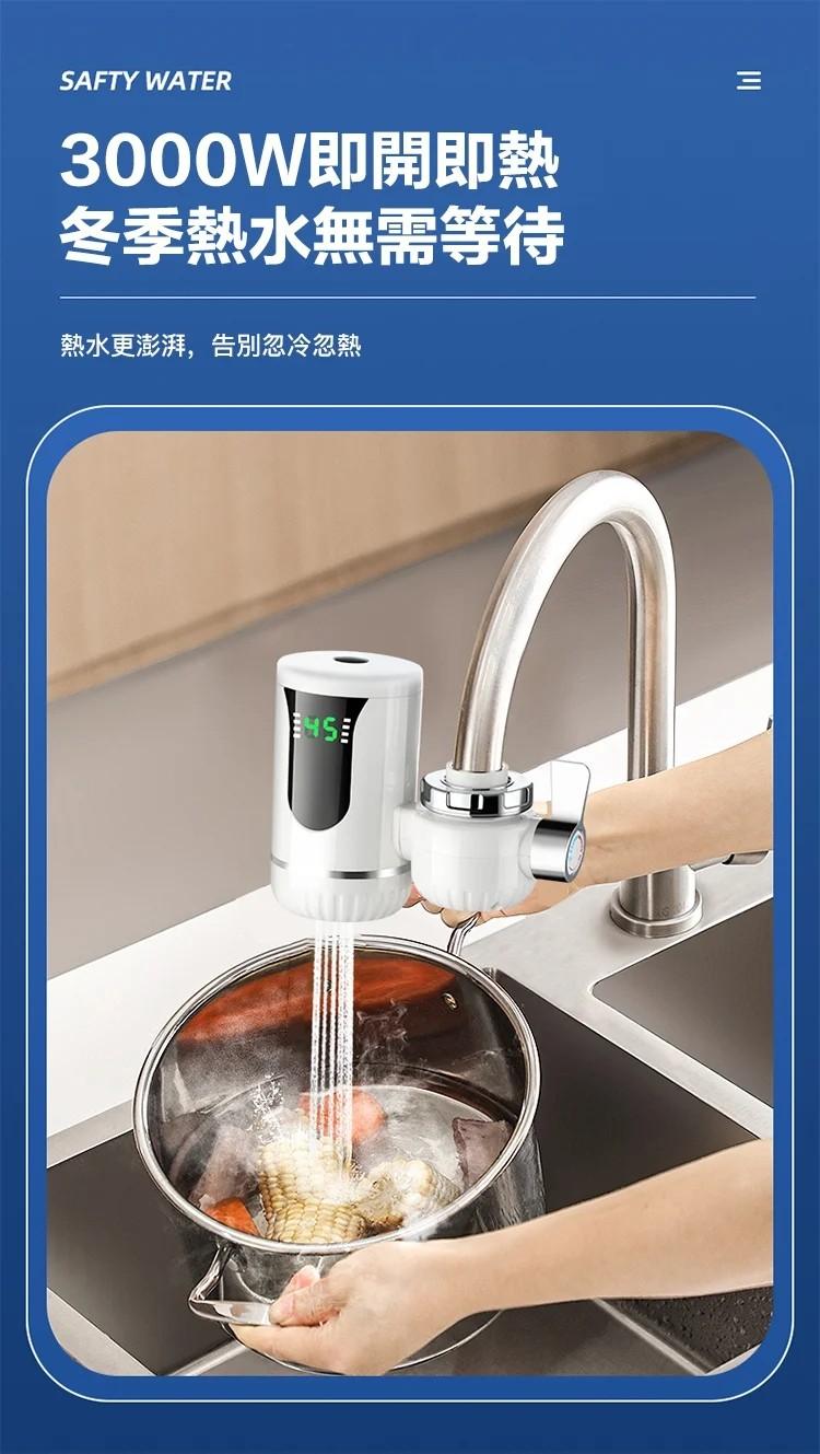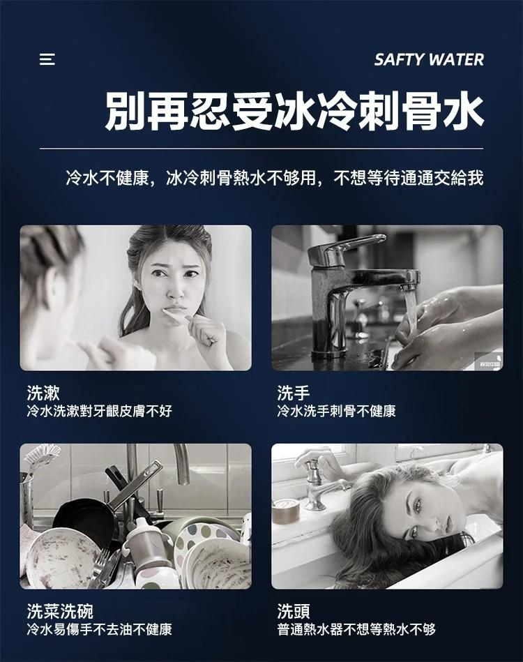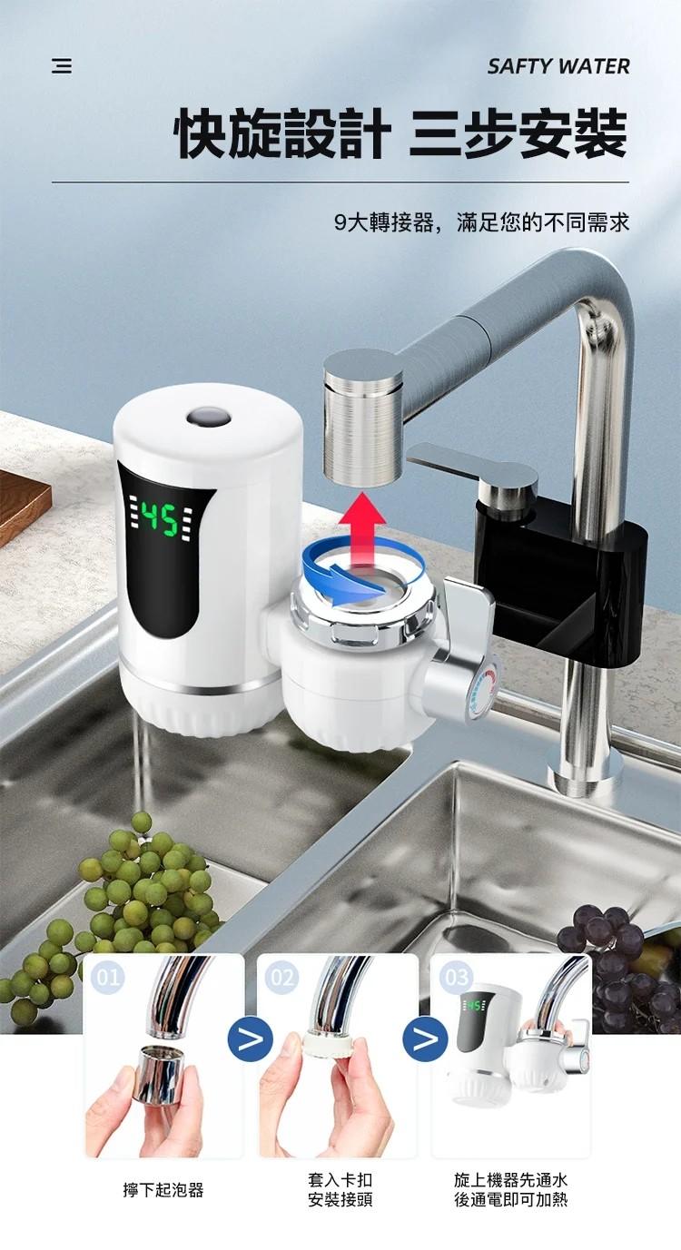 3秒速熱免安裝熱水龍頭,贈香港插頭 漏洞保護 萬向頭 安裝轉換頭